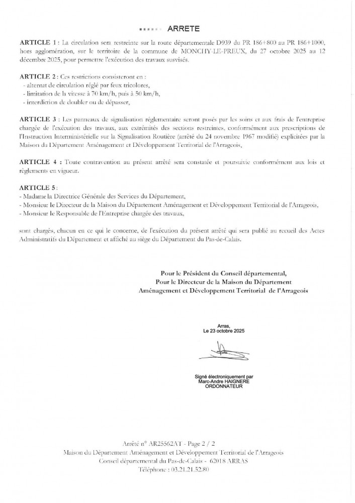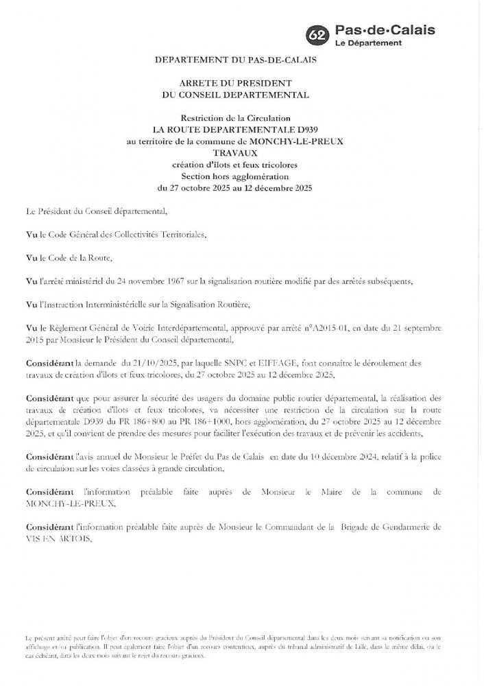 TRX DEPARTEMENTAL ENTRE WANCOURT ET MONCHY LE PREUX