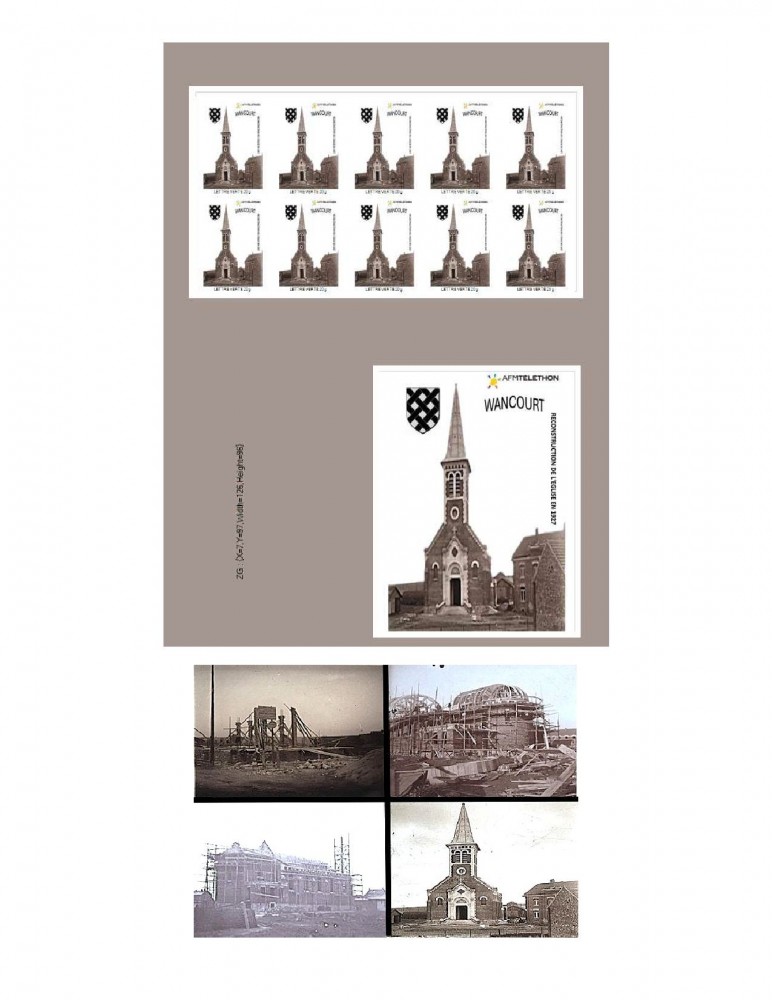 Le samedi 22 nov Salle des fêtes de Wancourt vente de planches d'un timbre au sujet de la reconstruction de l'église terminée en 1927 au profit du TELETHON. Ce timbre poste peut être utlisé pour du courrier ou devenir une collector.Cette vente est organisée par le cercle philatélique d'Arras.
